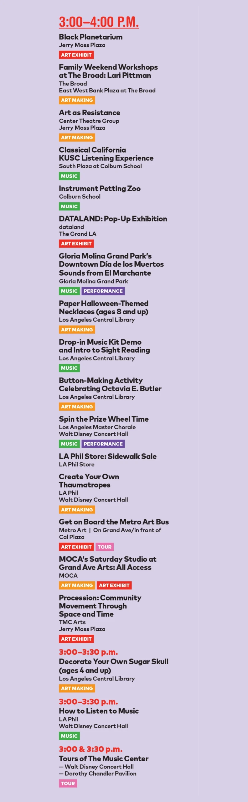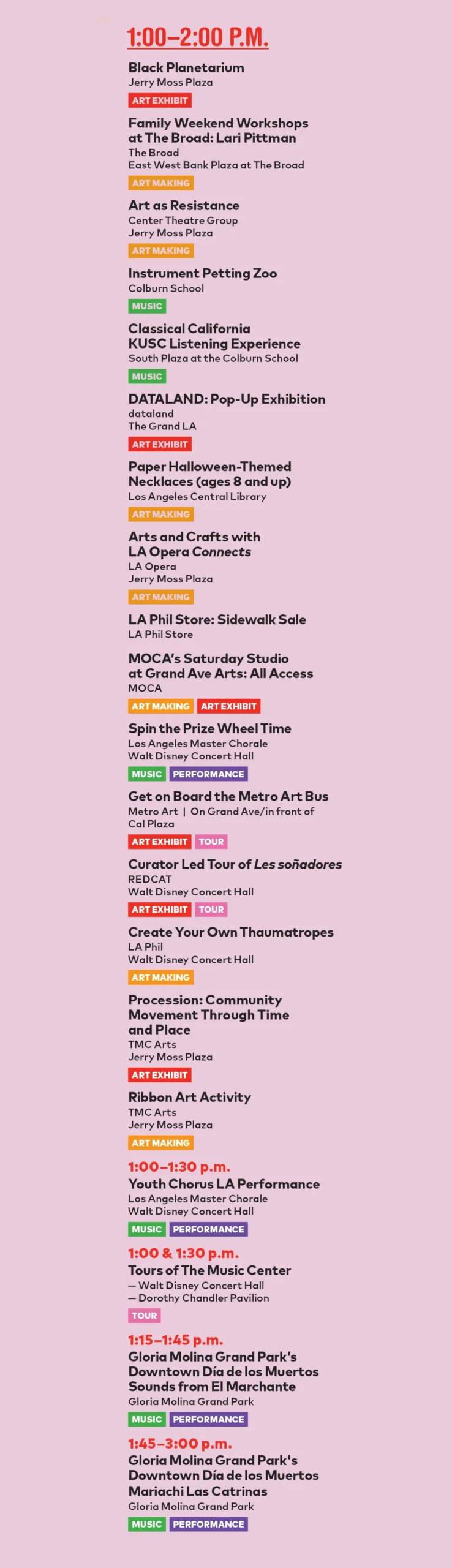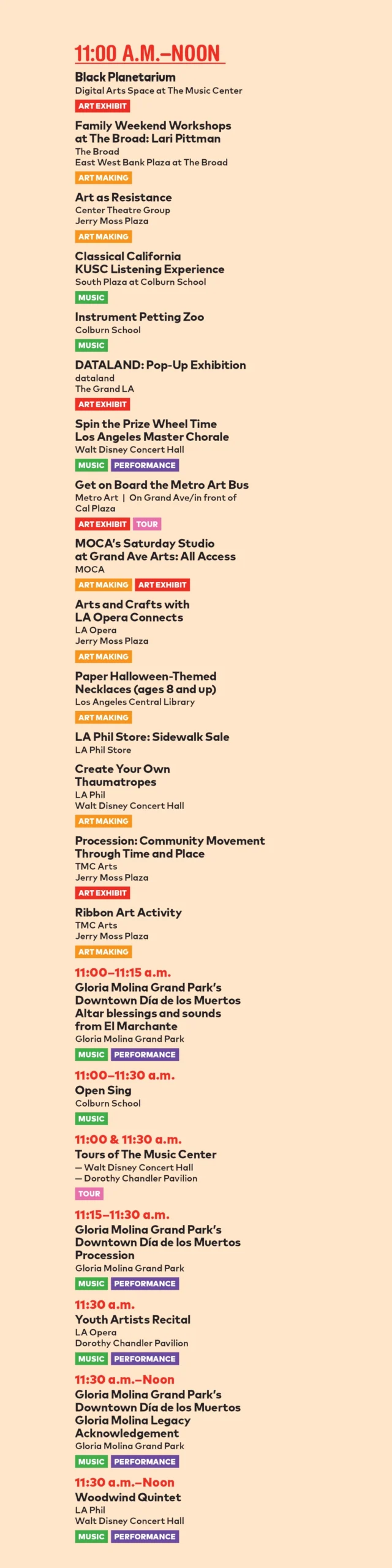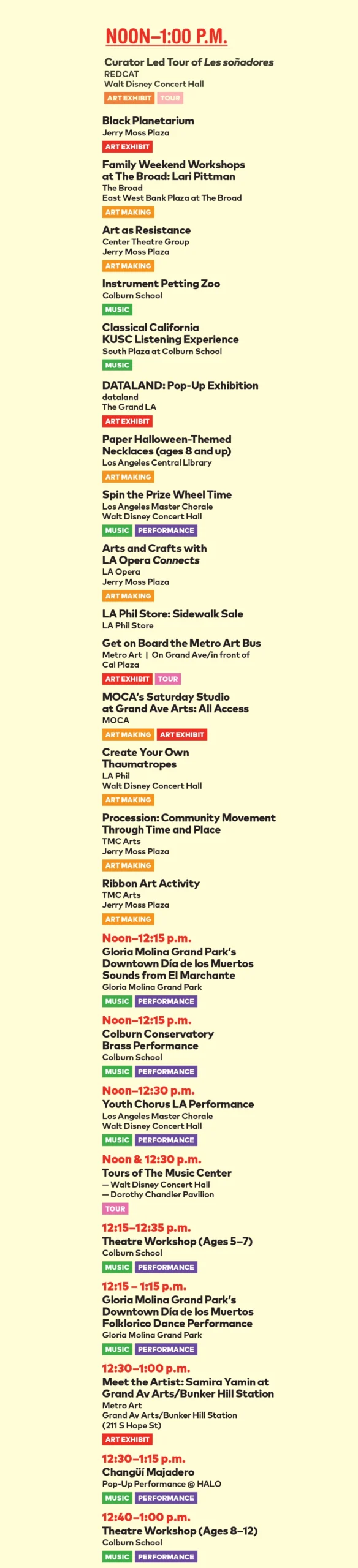 Things to do Along Grand Ave 11 AM to Noon Noon to 1 PM 1 PM to 2 PM 2 PM to 3 PM 3 PM to 4 PM 4 PM to 5 PM Schedule subject to change